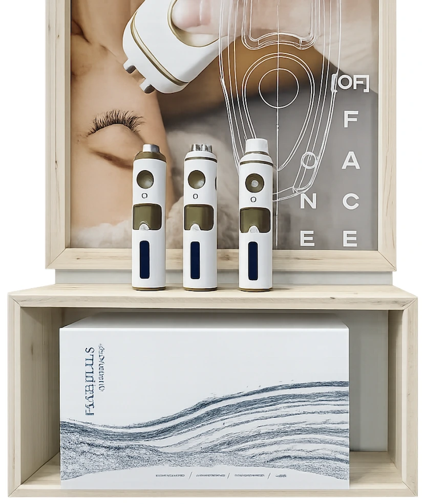 L’appareil ONE FACE s’intègre parfaitement dans une approche de soin visage avancée, en synergie avec les cosmétiques MELIOT.